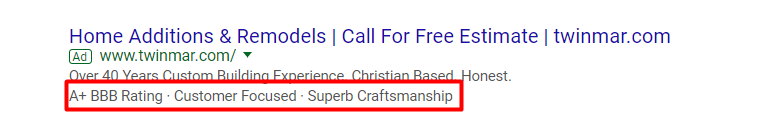 这方面的一些例子包括“免费送货”、“当天送货”和“定制计划”。这些都是吸引客户选择您的业务的关键短语。许多客户都在寻找这些属性,因此请使用callout扩展将它们包含在广告中。