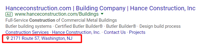 如果您有本地业务或在多个地区运营的业务位置扩展是您的最佳选择谷歌广告活动.这个位置扩展使用户可以看到您的企业的地址。