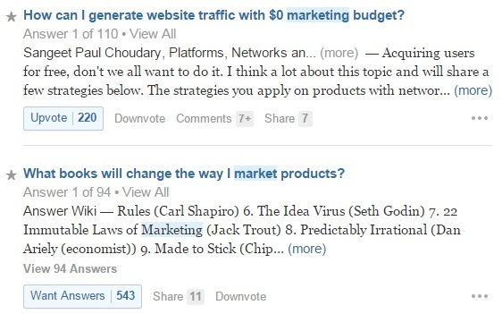 几乎你能想到的每个话题都有问题,网站的格式自然鼓励讨论。做一些与你的行业相关的搜索应该会得到一些有趣的问题,即使它们没有引起太多的讨论,你可以把问题本身当作内容.