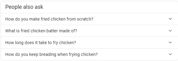例如,如果人们在口头上搜索如何做炸鸡,他们可能会问:
