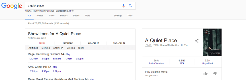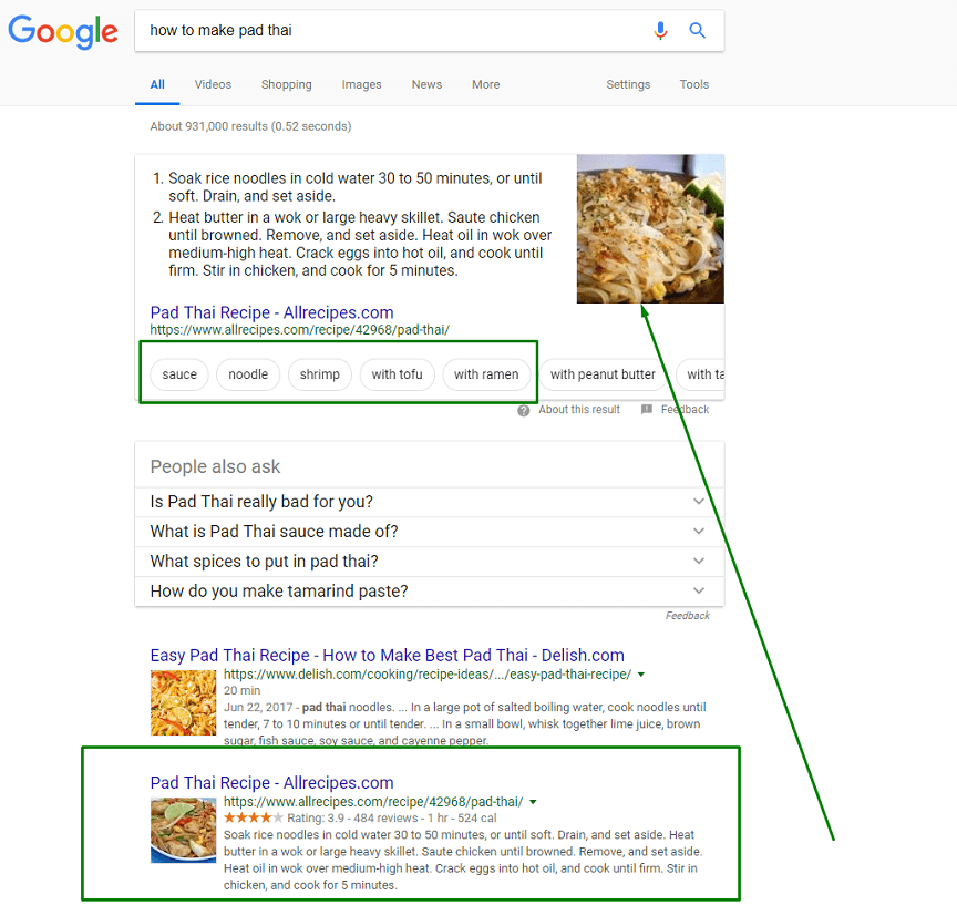 当您在线搜索时,您可能已经注意到谷歌为其他类型的搜索查询创建了框,例如当您查找菜谱、电影时间或寻找工作时。这些结果被称为丰富的结果,与特色片段不同。正如我们所讨论的,功能片段显示信息的一个小预览,如段落、列表或数据集。