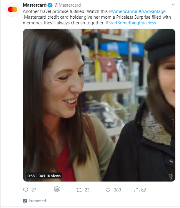 或者,这促进了万事达卡在Twitter上的视频帖子。