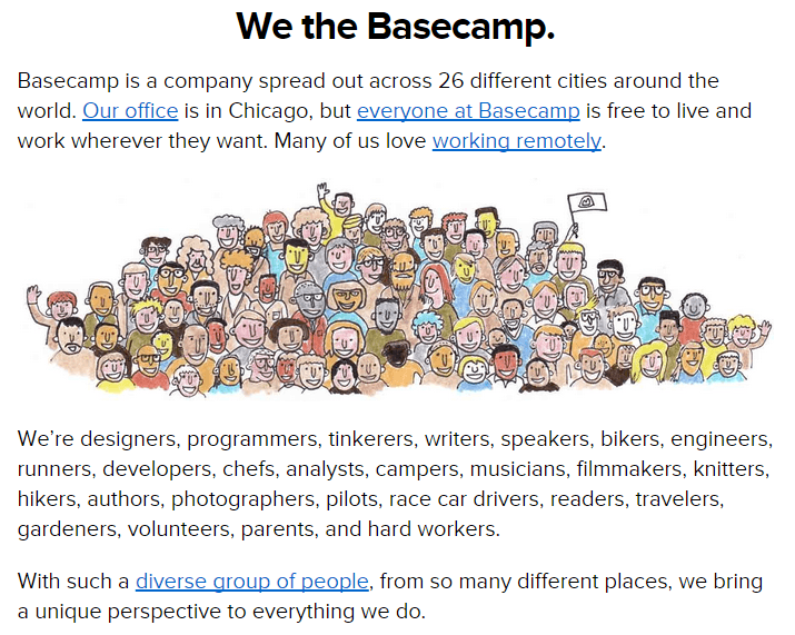 产品旨在更轻松地共同努力,因此他们的关于页面的重点是他们的团队: