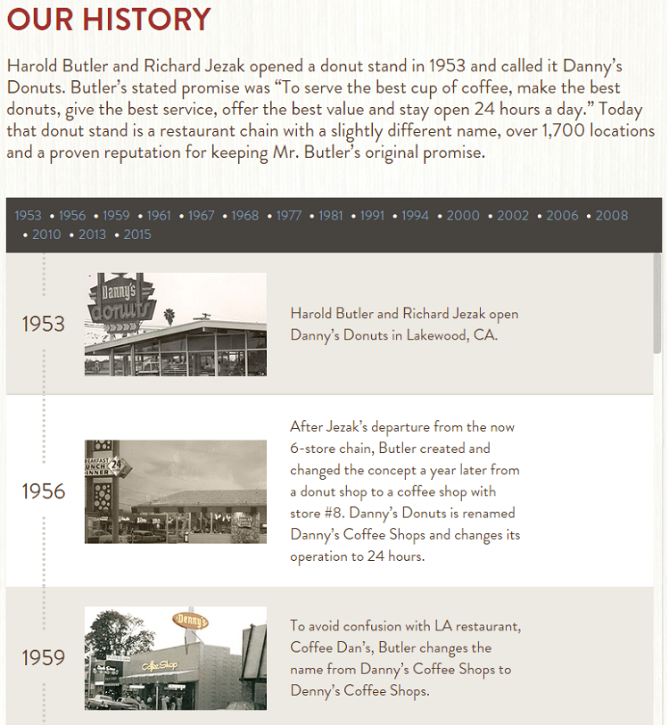 许多长历史的公司使用它们作为他们身份的基础,丹尼的在互动时间线中显示他们的工作做得很好: